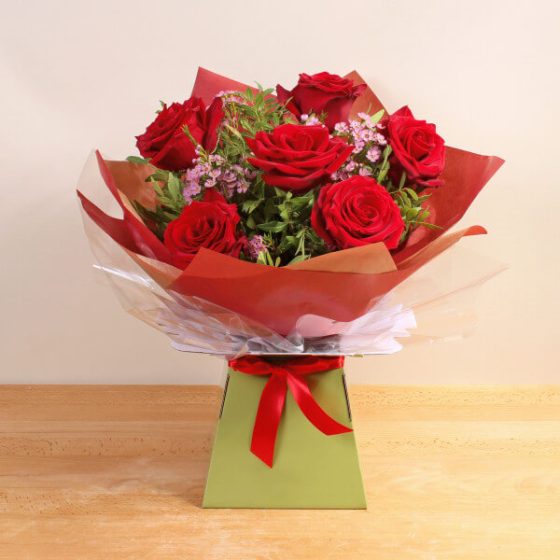Our Luxury 6 Red Roses is the perfect flower bouquet to say I Love You and surprise someone on Valentines Day. Also ideal for Anniversaries or Birthdays, nothing says ‘I love you’ like these classic, hand tied flowers. This bouquet will be handcrafted by an experienced florist, and delivered by hand.