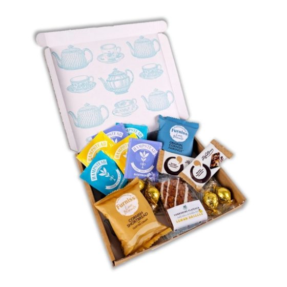 Discover organic teas with Cornish treats, premium flapjacks and handcrafted chocolates in our letterbox-friendly branded presentation. Thoughtfully curated for tea enthusiasts, this afternoon collection offers exceptional quality British treats delivered conveniently through your letterbox. This hamper contains 8 items: Hampstead Organic Herbal Tea Bag Single Green Tea & Mint Hampstead Organic Herbal Tea Bag Single Chamomile Hampstead Organic Herbal Tea Bag Single Earl Grey Yorkshire Flapjack Lemon Drizzle Flapjack 90g Lily O’Brien’s Marbled Dark & White Chocolate Bar 14g Lily O’Brien’s Vanilla Individually Wrapped Chocolate (Gold) Furniss Cornish Fairings 40g Furniss Clotted Cream Shortbread 40g Packed in a branded letterbox friendly gift box.